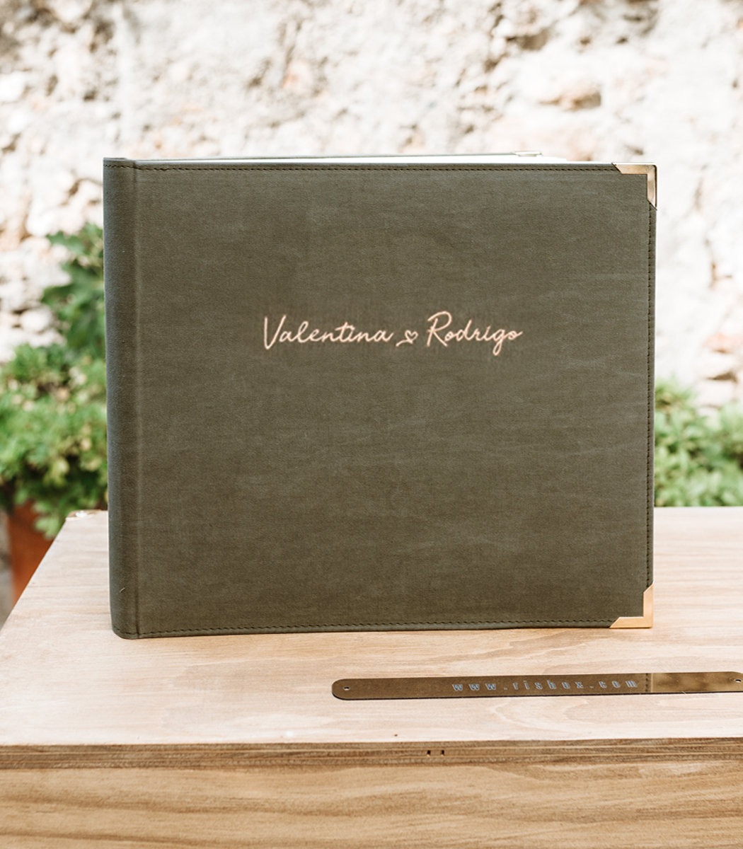 Podéis elegir el diseño de plantilla de fotos que más os guste y la personalizamos con vuestros nombres y la fecha de la boda o vuestro logo si lo tenéis. También personalizamos el álbum Valeria con vuestros nombres.