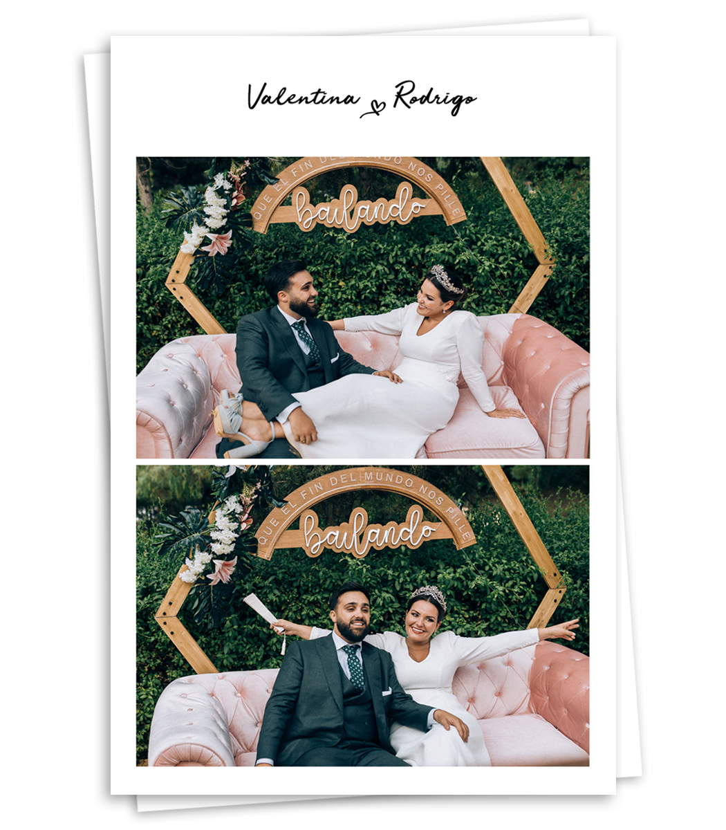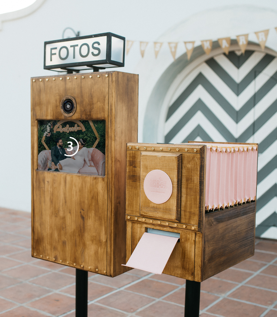 El pack Rincón Vintage incluye la experiencia del fotomatón vintage con decoración en el photocall para crear el rincón de vuestra boda donde todo el mundo quiera hacerse fotos. Durante tres horas, vuestros invitados se llevan todas las fotos impresas como recuerdo. Sin límite.